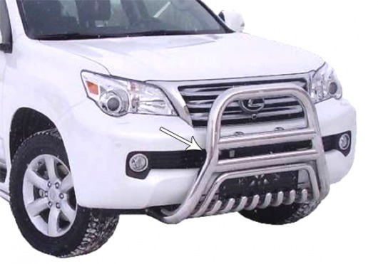 Передняя решетка Lexus GX460 (кенгурятник) – это защитная дуга на бампер из нержавеющей стали диаметром 76/76 мм.