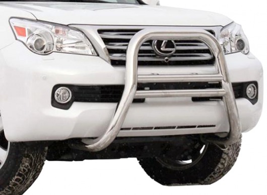 Передняя решетка Lexus GX460 (кенгурятник) – это защитная дуга на бампер из нержавеющей стали диаметром 76/51 мм.