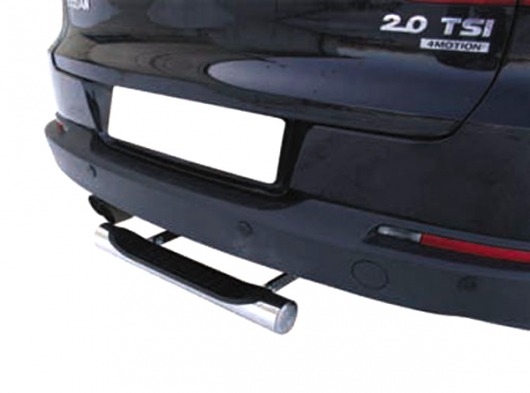 Труба на задний бампер Volkswagen Tiguan защищает задний бампер автомобиля от различных механических повреждений при столкновениях на дороге и неудачных парковках. А кроме этого, ступень на задний бампер для Фольксваген Тигуан — это еще и деталь тюнинга, а также дополнительная подножка для авто. Красиво и практично.