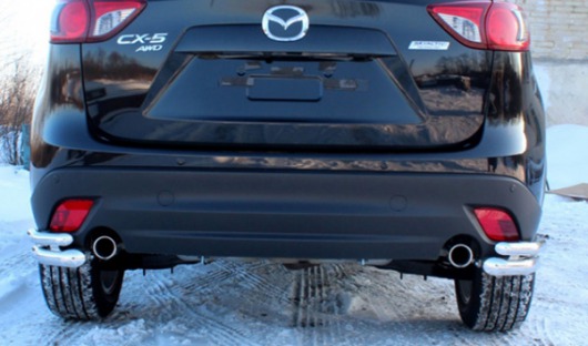 Защита заднего бампера для Mazda CX-5 – это двойные защитные уголки на бампер из нержавеющей стали диаметром 60/42 мм.