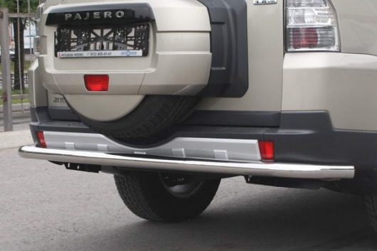 Защита заднего бампера для Mitsubishi Pajero IV – это труба на бампер из нержавеющей стали диаметром 76 мм.
