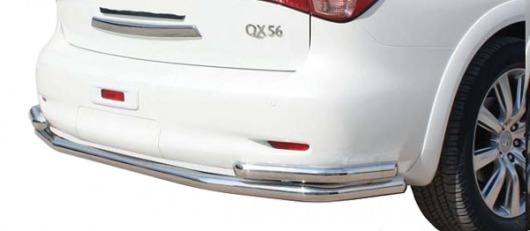 Труба на задний бампер Infiniti QX 56 защищает задний бампер автомобиля от различных механических повреждений при столкновениях на дороге и неудачных парковках. А кроме этого, защита заднего бампера для Инфинити QX 56 — это дополнительная деталь тюнинга.