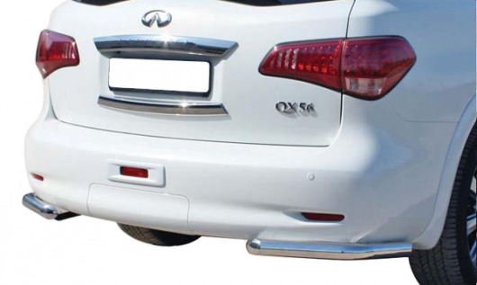 Уголки на задний бампер Infiniti QX56 защищают задний бампер автомобиля от различных механических повреждений при столкновениях на дороге и неудачных парковках. А кроме этого, защита заднего бампера для Инфинити QX56 — это дополнительная деталь тюнинга.