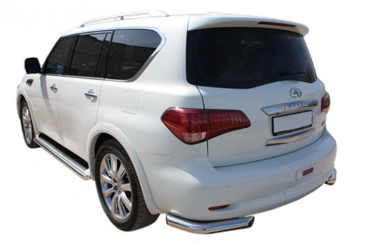 Защита заднего бампера для Infiniti FX 35/50 – это защитные уголки на бампер из нержавеющей стали диаметром 60 мм.
