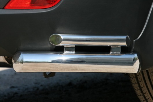 Защита заднего бампера для Hyundai IX 35 – это двойные защитные уголки на бампер из нержавеющей стали диаметром 76/42 мм.