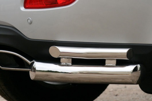 Защита заднего бампера для Hyundai Santa Fe – это двойные защитные уголки на бампер из нержавеющей стали диаметром 76/42 мм.