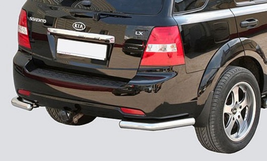 Защита заднего бампера для Kia Sorento – это защитные уголки на бампер из нержавеющей стали диаметром 60 мм.