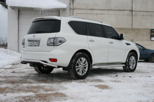 Волна на задний бампер Nissan Patrol защищает задний бампер автомобиля от различных механических повреждений при столкновениях на дороге и неудачных парковках. А кроме этого, защита заднего бампера для Ниссан Патрол — это дополнительная деталь тюнинга.