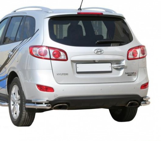 Защита заднего бампера для Hyundai Santa Fe – это двойные защитные уголки на бампер из нержавеющей стали диаметром 60/42 мм.