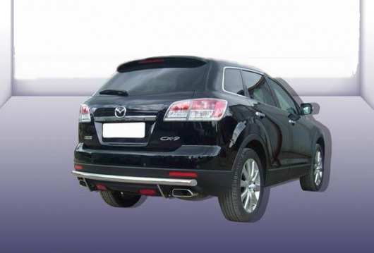 Защита заднего бампера труба предназначена для автомобилей Mazda CX-9 от 2013 г.в. Вам не придется подгонять защиту под размеры бампера вашего авто. И с монтажом проблем не возникнет: установка защиты заднего бампера производится в штатные отверстия, а значит, необходимость сверлить кузов отпадает.