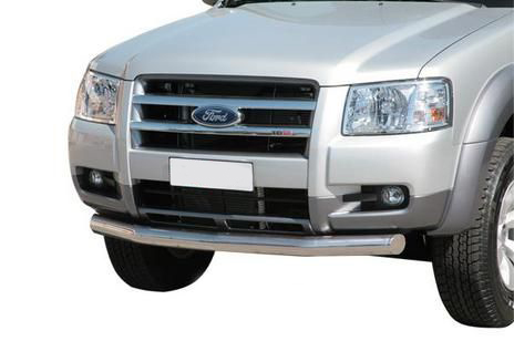 Защита переднего бампера труба предназначена для автомобилей Ford Ranger от 2013 г.в. Вам не придется подгонять защиту под размеры бампера вашего авто. И с монтажом проблем не возникнет: установка защиты переднего бампера производится в штатные отверстия, а значит, необходимость сверлить кузов отпадает.