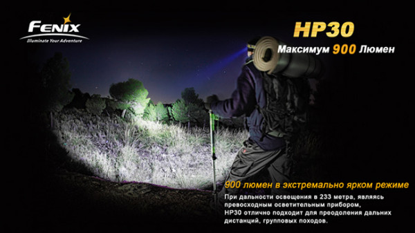 Налобный фонарь Fenix HP30 – уникальная модель. Обладая абсолютно беспрецедентной мощностью в 900 люмен, этот налобный светодиодный фонарь является безоговорочно номером один в своём классе по яркости. Это делает модель оптимальным выбором для охотников, рыболовов, спелеологов, альпинистов. Помимо этого, у Fenix HP30 есть несколько уникальных свойств – с него можно даже заряжать мобильные устройства!