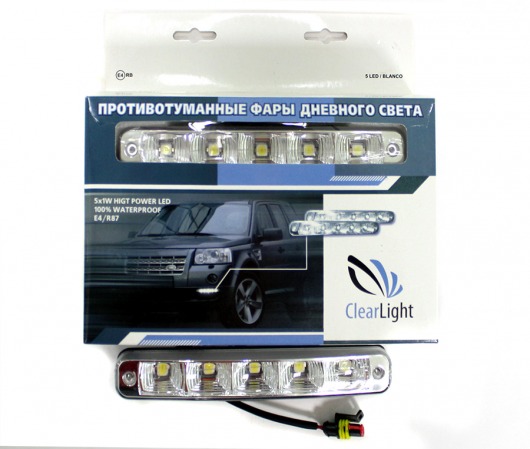 Противотуманные фары дневного света ClearLight E4/R87 обеспечивают яркий свет, почти как солнечный. Представляют собой 2 блока фар с установленными в них 5 яркими светодиодами дневного света. Конструкция позволяет повысить интенсивность излучения и выделить ваш автомобиль при любых погодных условиях и в любое время суток.