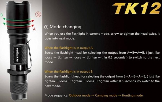 Тактический светодиодный фонарь TK12 имеет три основных уровня яркости: