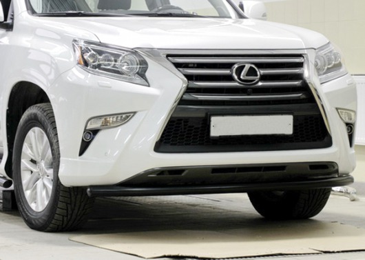 Защита переднего бампера труба предназначена для автомобилей Lexus GX460 от 2013 г.в. Вам не придется подгонять защиту под размеры бампера вашего авто. И с монтажом проблем не возникнет: установка защиты переднего бампера производится в штатные отверстия, а значит, необходимость сверлить кузов отпадает.