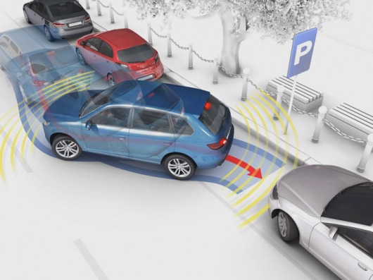 Звуковые сигналы меняющейся тональности для определения расстояния до ближайших объектов.