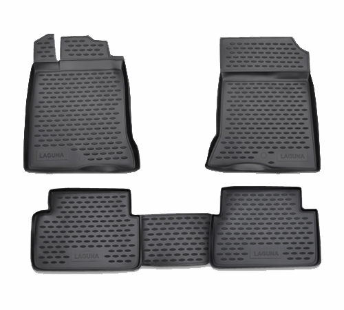 Черные автоковрики в салон Renault Laguna III не только улучшат внешний вид салона вашего автомобиля, но и надежно уберегут его от пыли, грязи и сырости, а значит, защитят кузов от коррозии. Полиуретановые автоковрики разработаны специально для автомобилей Renault Laguna III от 2007 г.в.