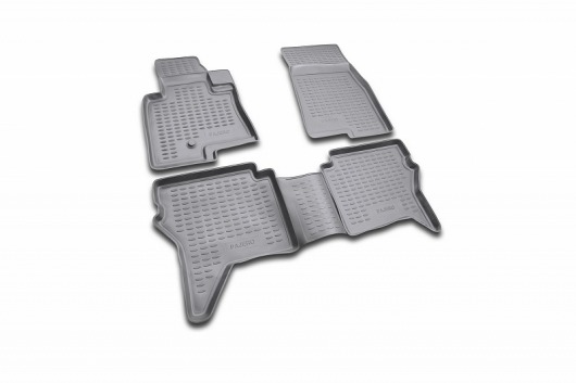 Серые автоковрики в салон Mitsubishi Pajero IV не только улучшат внешний вид салона вашего автомобиля, но и надежно уберегут его от пыли, грязи и сырости, а значит, защитят кузов от коррозии. Полиуретановые автоковрики разработаны специально для автомобилей Mitsubishi Pajero IV от 2006 г.в.