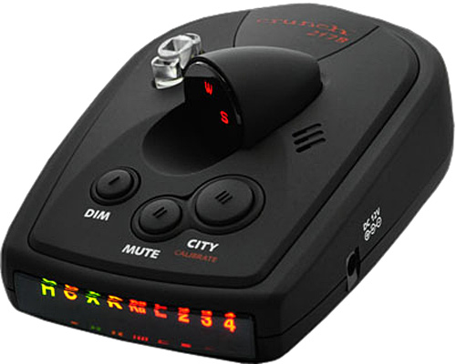 Дополнительная опция радар-детектора Crunch 217B - компас, оснащенный возможностью калибровки. Сделать ее вы сможете самостоятельно, для чего просто необходимо нажать и удерживать кнопку "Calibrate" на пару секунд. После того, как 4 светодиода начнут мигать нужно еще раз нажать "Calibrate" и компас будет настроен.