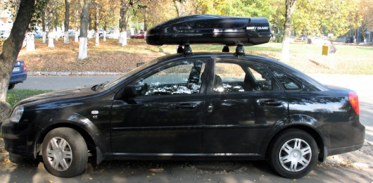 Обратите внимание! Сначала необходимо закрепить на крыше поперечины багажника, а потом уже на них ставится бокс. Если у вас нет поперечников, вы можете подобрать их для своей марки авто здесь.