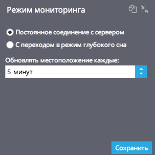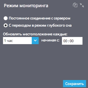 в интервальном режиме с переходом в «режим сна» в зависимости от настроенной периодичности определения местонахождения