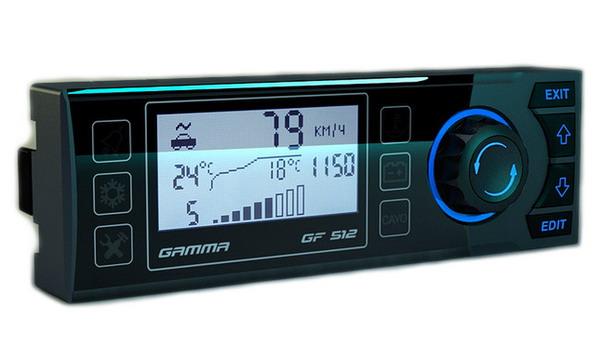 Автомобильный бортовой компьютер Gamma GF 512 — это простой и удобный, и в то же время весьма функциональный прибор. Он совмещает в себе функции системы автоматического управления отопителем и маршрутного компьютера. С этим устройством вы не только сможете легко и просто управлять температурой в салоне, но и будете постоянно осведомлены о работе основных узлов и систем вашего автомобиля. Кроме того, прибор продиагностирует важнейшие показатели работы авто и вовремя сообщит вам о возникших неполадках. Так что вы всегда будете чувствовать себя комфортно и уверенно за рулем своего автомобиля.