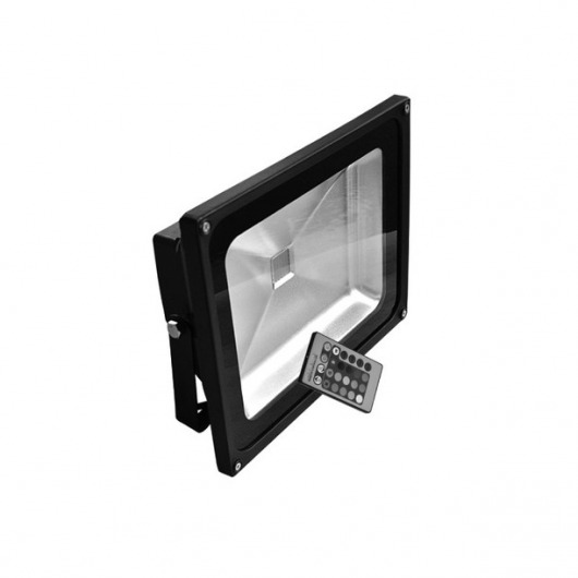 Led rgb прожектор имеет в комплекте пульт ДУ с литиевой батарейкой, с помощью которого можно регулировать яркость свечения и режимы (постоянное свечение, плавная смена цветов, стробоскоп). Радиус действия — 6 метров. Это облегчает пользование прожектором в местах с ограниченным или затрудненным обслуживанием.