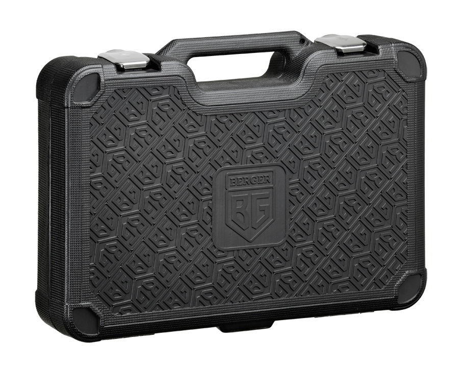 Весь набор инструментов BERGER BG128-1214 находится в оригинальном и стильном кейсе. Чемодан изготовлен из высокотехнологичного пластика с добавлением резины. Такая конструкция делает его очень ударопрочным и стойким к низким температурам.