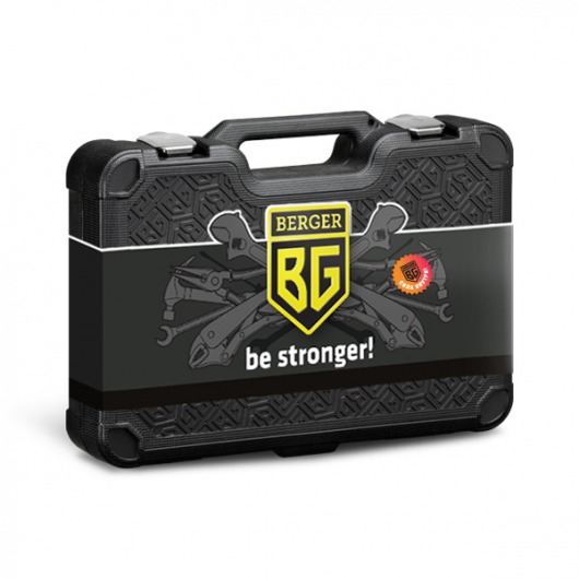 Весь набор инструментов BERGER BG045-14 находится в оригинальном и стильном кейсе. Чемодан изготовлен из высокотехнологичного пластика с добавлением резины. Такая конструкция делает его очень ударопрочным и стойким к низким температурам.