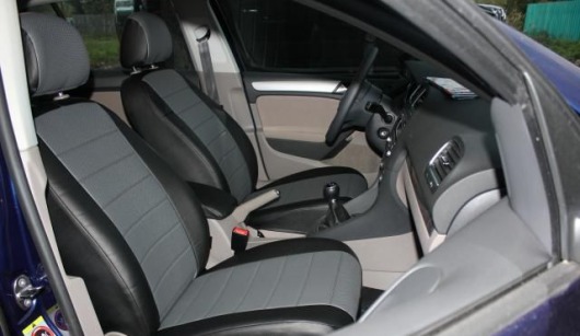Вопросы и отзывы про Чехлы автомобильные для Volkswagen Golf 6 (черно-темно-серые, экокожа)