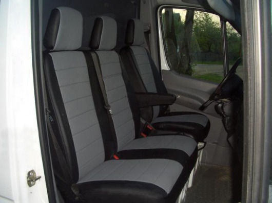Автомобильные модельные чехлы для Mercedes Sprinter, 3-местный (черно-темно-серого цвета) полностью повторяют контуры штатной обивки сидений. Вы можете быть уверены, что такие чехлы на сидения не потеряют форму даже спустя многие годы использования. Модельные чехлы "Автопилот" допускают использование штатного подогрева сидений, а также подходят сидениям с подушкой безопасности.