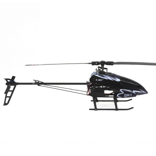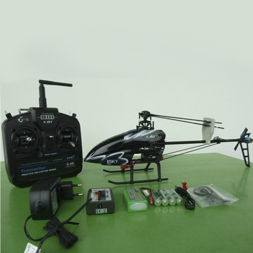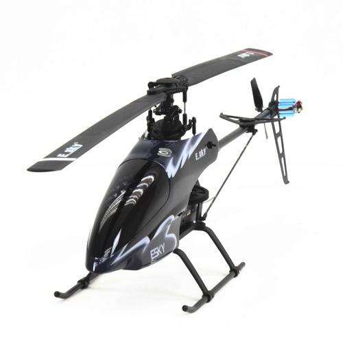 Радиоуправляемый вертолет E-sky ESKY 500 2.4G — это бесфлайбарная модель, которая способна выполнять в воздухе сложные 3D фигуры. Вертолет на радиоуправлении оборудован мощным мотором 370 серии, на котором установлен радиатор охлаждения. Он позволяет улучшить работу двигателя. Пульт управления 6-и канальный с частотой 2.4G. Модель имеет прочную конструкцию и проста в обслуживании. Вертолет E-sky E500 очень прочный и выдерживает падения. Вы можете приобрести модель в черном исполнении.
