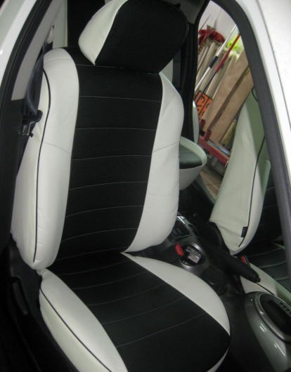 Вопросы и отзывы про Чехлы автомобильные для Nissan Juke (бело-черные, экокожа)