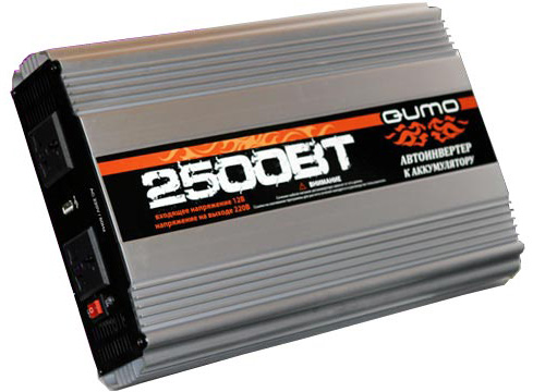 Автомобильный преобразователь напряжения (инвертор) QUMO 12-220В 2500Вт преобразует 12В постоянного тока в 220В переменного. Инвертор напряжения имеет мощность в 2500Вт. Вы получаете в автомобиле обычную домашнюю розетку на 220В, просто подключив устройство к клеммам аккумулятора. Кроме того, в автомобильном инверторе QUMO 12-220 2500Вт имеется выход USB для работы и зарядки портативных устройств.