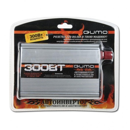 Автомобильный преобразователь напряжения (инвертор) QUMO 12-220В 300Вт преобразует 12В постоянного тока в 220В переменного. Инвертор напряжения имеет мощность в 300Вт. Вы получаете в автомобиле обычную домашнюю розетку на 220В, просто подключив устройство к клеммам аккумулятора. Кроме того, в автомобильном инверторе QUMO 12-220 300Вт имеется выход USB  для работы и зарядки портативных устройств.