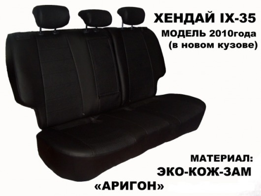 Оригинальные чехлы для Хендай ix35 (от 2010 г.в.) сделаны из экокожи Аригон — экологически чистого и сертифицированного материала. Авточехлы из экокожи не вызывают аллергию, устойчивы к перепадам температур и не пропускают жидкость.