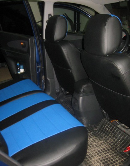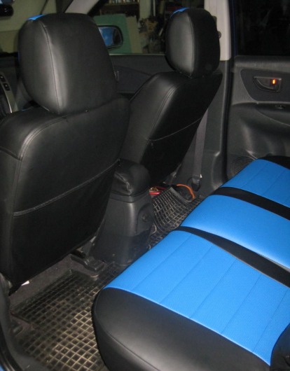 Вопросы и отзывы про Чехлы автомобильные для Hyundai Tucson от 08 г.в. (черно-синие, экокожа)