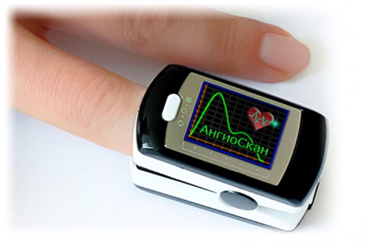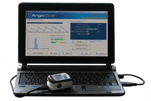 • Сканер сосудов Ангиоскан-01П применяется в домашних условиях для персонального мониторинга сердца, Прибор обеспечивает измерение многих показателей, среди которых пульс, содержание в крови кислорода, эластичность сосудов и уровень стресса.