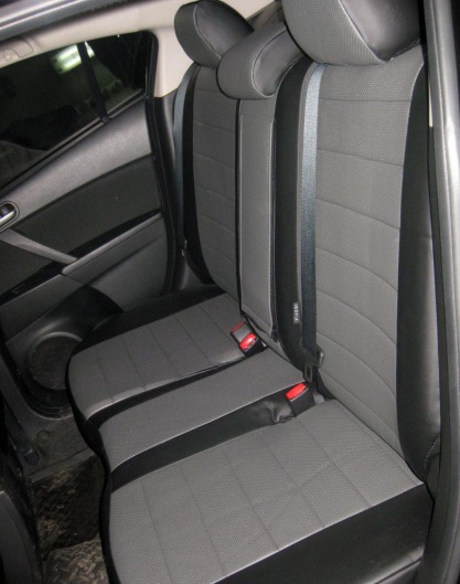 Вопросы и отзывы про Чехлы автомобильные для Mazda 3 от 13 г.в. (черно-темно-серые, экокожа)