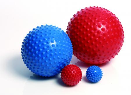 • Упражнения с массажным мячом-фитболом  помогают при болях в спине, игольчатая поверхность гимнастического мяча благотворно воздействует на нервные окончания и способствует улучшению кровообращения.