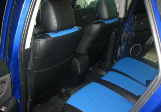 Вопросы и отзывы про Чехлы автомобильные для Mazda 6, седан (кроме MPS), 02-08 г.в. (черно-синие, экокожа)