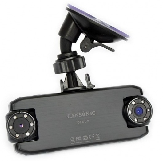 Видеорегистратор для автомобиля оснащен G-сенсором, датчиком движения, 12-ю инфракрасными светодиодами для съемки вечером и ночью, а также поворотным креплением на 360°. Вы можете прикрепить регистратор Cansonic 707 Duo на лобовое стекло своего автомобиля и подключить к прикуривателю. Кстати, зарядное устройство в комплекте 3,5 метра, поэтому вы можете незаметно и аккуратно проложить его под обивкой боковых стоек и потолка. Модель подходит для автомобилей с напряжением бортовой сети 12-24 В.