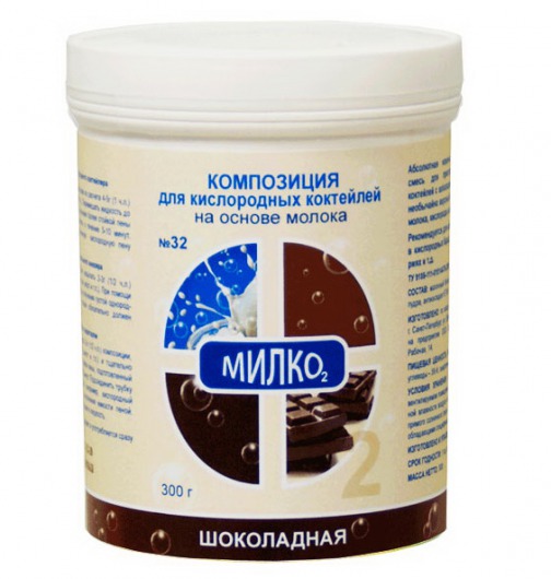 Смесь для кислородных коктейлей со вкусом шоколада сочетает в себе свойства кислородного и молочного коктейлей. Шоколадный вкус коктейля на основе этой смеси придется по вкусу всем сладкоежкам.  Кислородные коктейли, приготовленные на основе этой смеси, образуют плотную кислородную пену, являются отличной альтернативой молочным коктейлям. Композиция для кислородного коктейля создана на основе молочного белка.