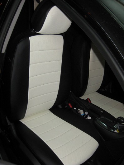 Вопросы и отзывы про Чехлы автомобильные для Opel Astra J хэтчбек от 09 г.в. (черно-белые, экокожа)