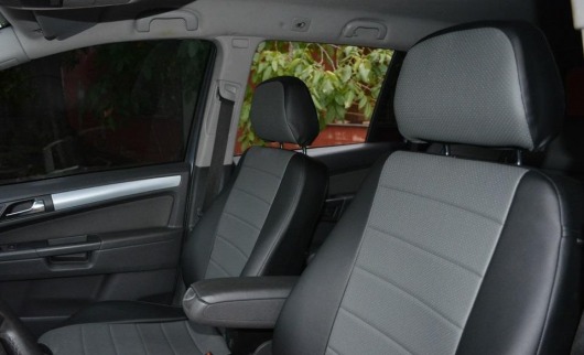 Вопросы и отзывы про Чехлы автомобильные для Opel Zafira C от 12 г.в. (черно-темно-серые, экокожа)