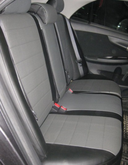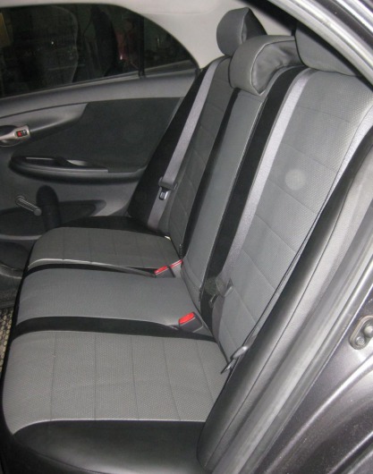 Вопросы и отзывы про Чехлы автомобильные для Toyota Corolla, хэтчбек, 07-13 г.в. (черно-темно-серые, экокожа)