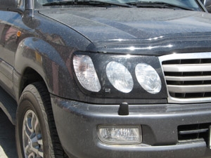 Данные защитные накладки на фары изготавливаются с учетом особенностей Toyota Land Cruiser 100 от 2005 г.в. и полностью соответствуют всем техническим требованиям. Чтобы установить защиту фар, вам не нужно покупать крепежи или сверлить кузов. Достаточно просто открыть капот, закрепить защиту внизу фары, а затем защелкнуть ее сверху. Это надежная защита фар от кражи: снять накладку при закрытом капоте просто невозможно.