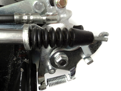 Устройство снабжено встроенным саморегулирующим механизмом, не требующим регулировки троса стояночного тормоза