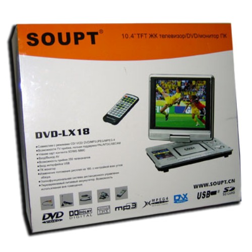 Портативный ЖК TFT DVD плеер с TV-тюнером SOUPT DVD-LX18 имеет универсальный разъем для карт памяти, что позволяет избавиться от необходимости иметь большую видиотеку в салоне автомобиля. Прибор может работать как от обычной сети, так и от бортовой электро сети автомобиля, а так же от встроенного аккумулятора довольно большой мощности.