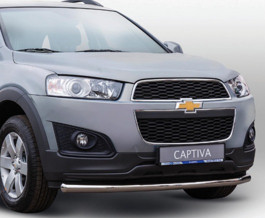 Защита переднего бампера труба предназначена для автомобилей Chevrolet Captiva от 2014 г.в. Вам не придется подгонять защиту под размеры бампера вашего авто. И с монтажом проблем не возникнет: установка защиты переднего бампера производится в штатные отверстия, а значит, необходимость сверлить кузов отпадает.